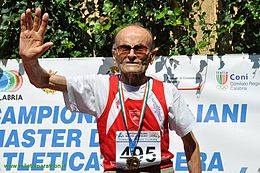 “Lo stupore e l’orgoglio” – Significa essere uno dell’atletica con un trascorso sartoriale, avendo cambiato vita a settant’anni, passato per piste e pedane outdoor e indoor a suon di records, aver avuto per compagni di gara e d’avventura Ottavio Missoni, Giuseppe Rovelli e Gabre Gabric, tenuto “lectio magistralis” agli studenti della Università di Urbino, su iniziativa del Delegato CN Fair Play Marche, prof. Ario Federici, e salire la notte scorsa su palco dell’Ariston con Carlo Conti per dare uno start up di ottimismo e un riconoscimento sociale a tutti coloro che, invecchiando con uno stile di vita corretto e facendo attività fisica, se non agonistica, contribuiscono meritoriamente alla qualità complessiva di vita e un minor costo della sanità pubblica. Penso che Peppe Ottaviani avrebbe dovuto cantare il “Nessun dorma” dalla Turandot di Giacomo Puccini, piuttosto che “Vecchio Scarpone”, eseguito benissimo, ma roba da alpini, visto che il “ragazzo” ha un passato nell’aeronautica militare. Ma vediamo come è andata con Peppe a dicembre del 2013, quando aveva appena 98 anni ed era coinvolto in una delle vulcaniche iniziative del nostro Ario Federici : S. IPPOLITO – Nuova “incursione accademica” per Giuseppe Ottaviani che ha tenuto una lezione davanti a circa cinquanta studenti della Facoltà di Scienze Motorie di Urbino.