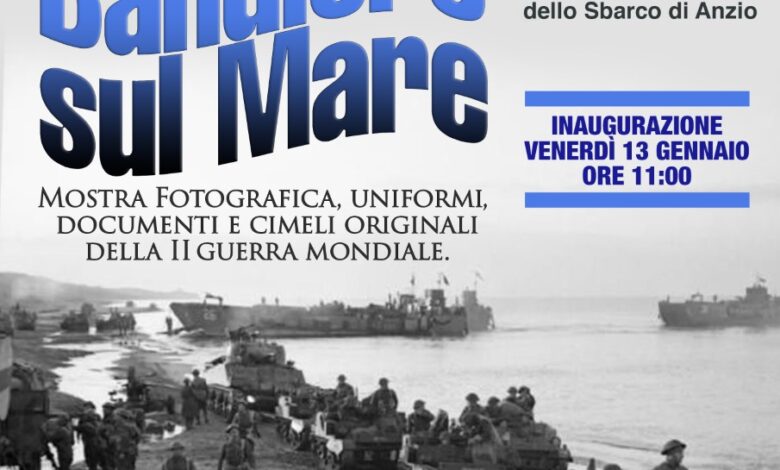 L’importante mostra “Bandiere sul Mare”, giunta alla dodicesima edizione, aprirà il programma delle celebrazioni e delle manifestazioni per il 79° Anniversario dello Sbarco di Anzio, promosso dalla Commissione Straordinaria che amministra la Città neroniana. L’evento culturale, organizzato dall’Associazione Warriors at Anzio, in collaborazione con il Comune di Anzio e con l’Ufficio Circondariale Marittimo, è finalizzato a mantenere viva la memoria storica, con l’esposizione di cimeli e documenti originali dell’Operazione Shingle.