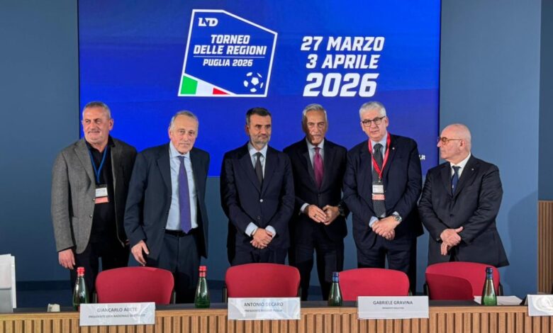 “Il Torneo delle Regioni – ha sottolineato Decaro – è una manifestazione importante, che torna dopo 38 anni nella nostra regione. Il calcio dilettantistico è una palestra dal punto di vista umano e dal punto di vista sociale, ma è anche un grande attrattore dal punto di vista turistico, perchè questo evento permetterà di conoscere tanti borghi che magari sono poco conosciuti, ma che custodiscono bellezze, cultura e storia. Quando lo sport, la cultura e il turismo stanno insieme, è un fatto positivo, in una regione che sarà Regione europea dello sport, nella quale arriveranno centinaia di tesserati: sarà una grande occasione soprattutto per la Puglia, in un momento particolare della storia della nostra regione”.