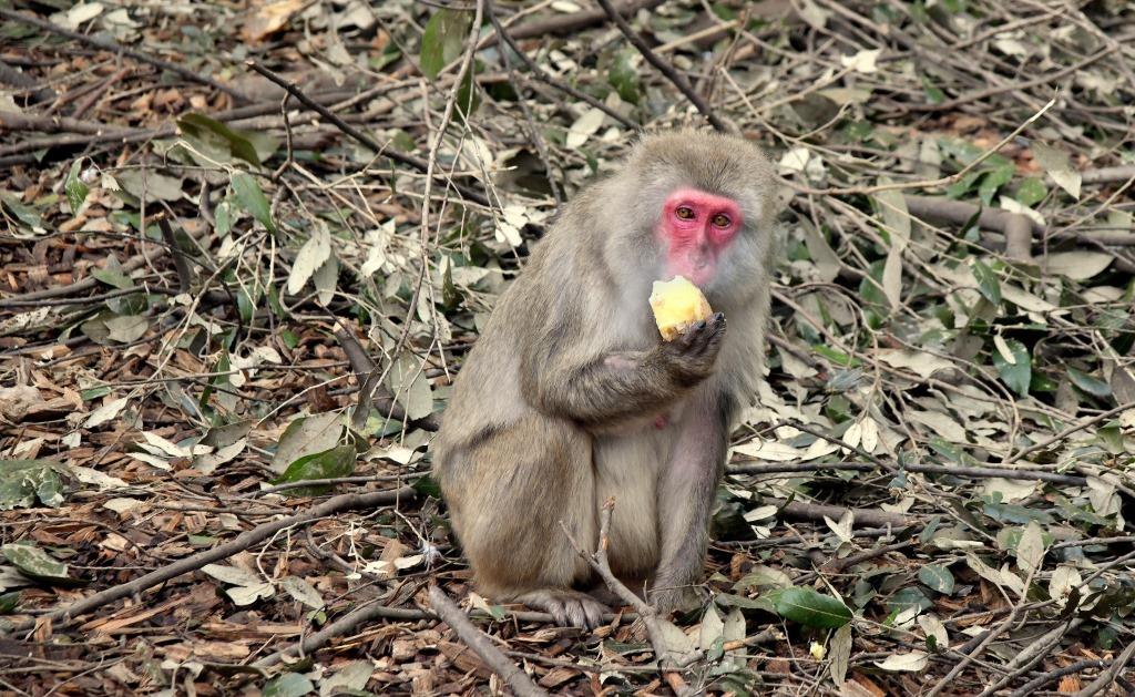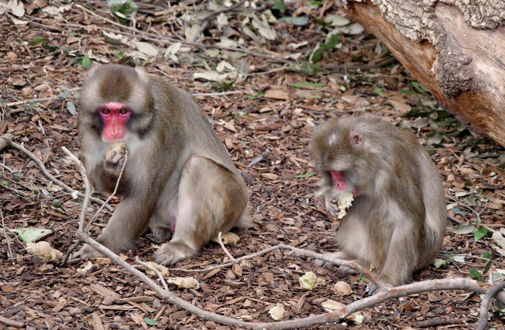 La nutrita colonia di macachi del Giappone, che può contare come tutti i primati su ricoveri interni riscaldati, riceve patate lesse calde, distribuite nell’ampia area esterna.