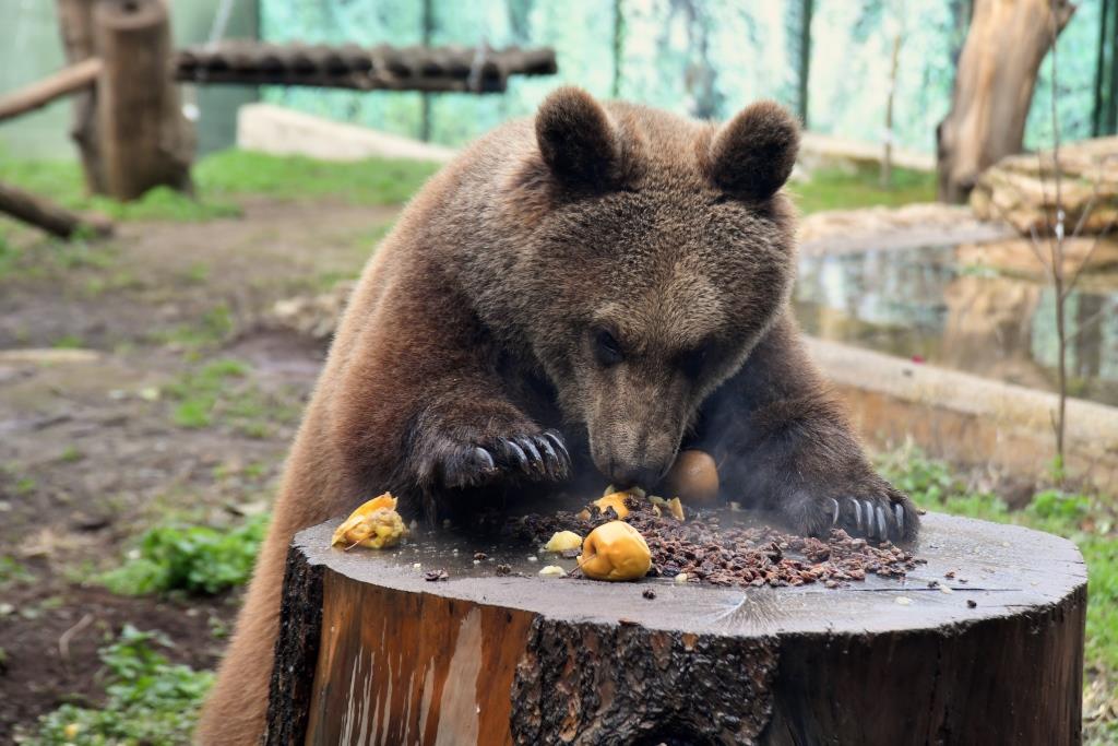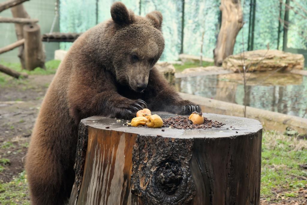 All’orso Kuma, invece, sono riservate mele cotte calde insieme all’uvetta e al miele, che i keeper spalmano in quantità sui tronchi dell’exhibit.