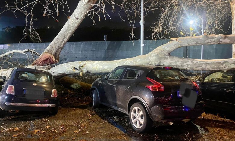 Albero crolla nel giardino di un asilo a Roma per il vento: nessun ferito, macchine danneggiate