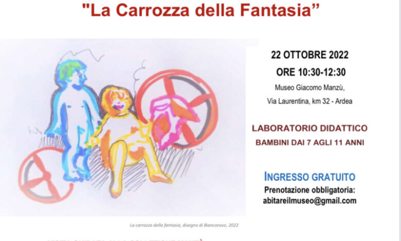Abitare il museo – Ascoltare le opere, “La giostra della fantasia” è un evento dedicato alle famiglie che si terrà sabato 22 ottobre 2022 dalle 10:30 alle 12:30 presso il Museo Giacomo Manzù, ad Ardea. Un evento dedicato soprattutto ai bambini tra i 7 e gli 11 anni ed i loro genitori alla scoperta di Giacomo Manzù e delle sue opere. L’iniziativa, organizzata dal Museo Giacomo Manzù, Direzione Regionale Musei Lazio, dalla Direttrice Maria Sole Cardulli, dal Liceo “A. Meucci” di Aprilia, “Life” Associazione per il miglioramento della qualità della vita, la prof.ssa Federica Calandro, la prof.ssa Chiara Della Valle, gode del patrocinio del Comune di Aprilia ed è sostenuta dell’Assessore alla Cultura Gianluca Fanucci.