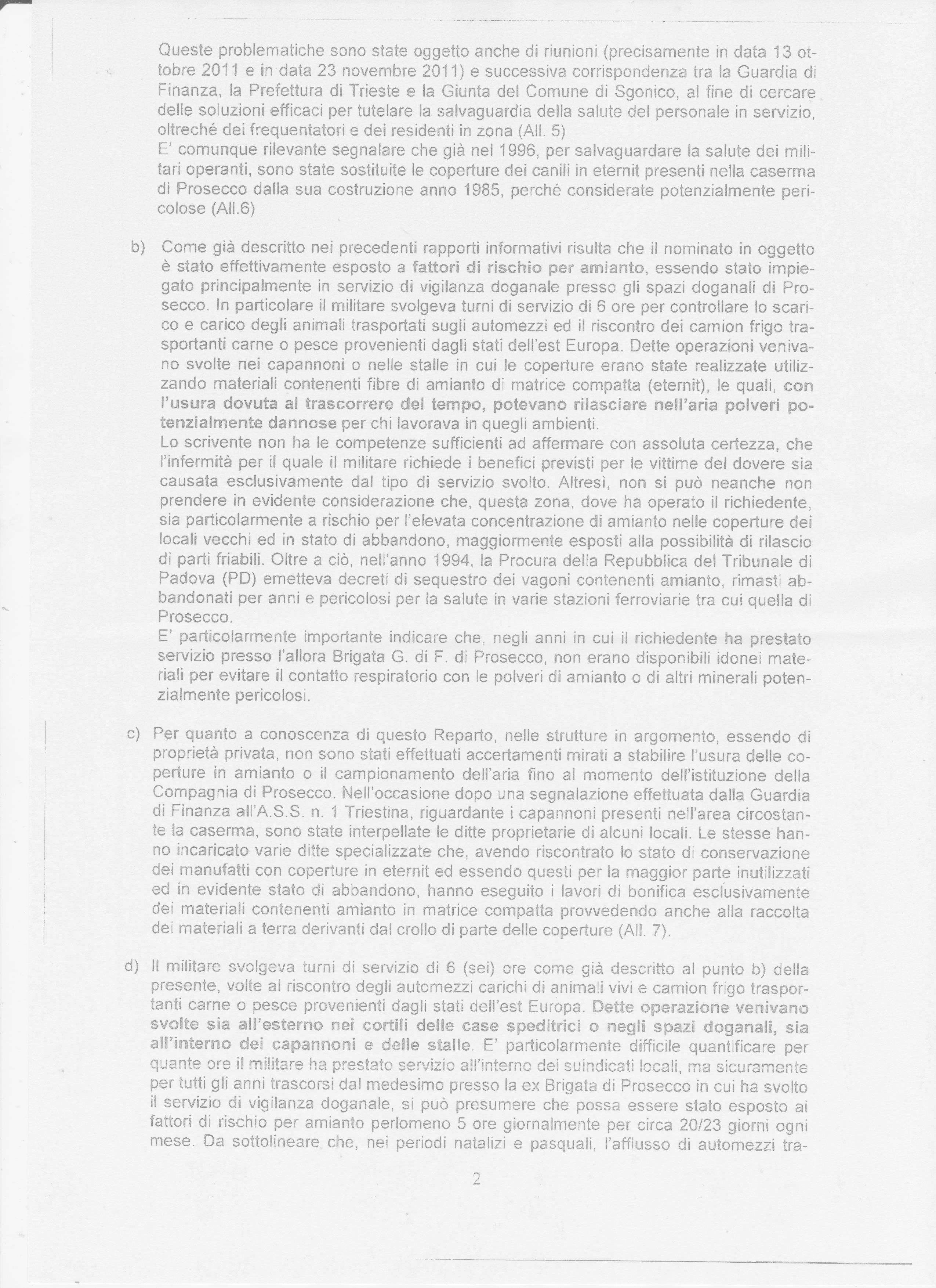 Antonio Dal Cin intende anche acquisire il “Rapporto Informativo” redatto dalla Guardia di Finanza di Ferrara (FE), in merito all’attività di servizio prestata nel 1992, presso lo zuccherificio “Eridania” di Bondeno (FE), già all’attenzione delle cronache nazionali per la presenza di amianto all’interno del sito e per alcuni decessi per mesotelioma nei lavoratori, come peraltro evidenziato nello studio intrapreso dal Centro di Ricerca sul Cancro, Fondazione Europea di Oncologia e Scienze Ambientali “B. Ramazzini” di Bologna (BO), sugli zuccherifici e le morti, tra cui figura anche una ragazza di 37 anni esposta sin dalla nascita attraverso la tuta indossata dal padre.