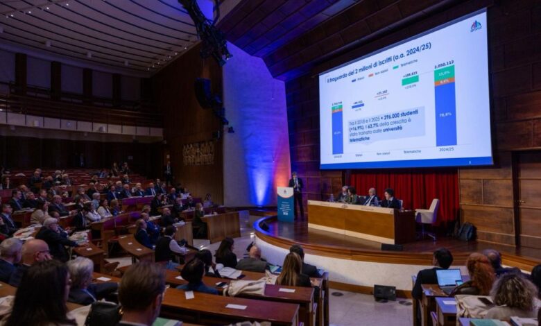 ROMA (ITALPRESS) – Il sistema universitario italiano raggiunge nel 2024/25 i 2.050.112 iscritti, il massimo storico assoluto, con 100 atenei, 413.943 laureati, 65.617 docenti e proventi complessivi per 19,5 miliardi di euro. La crescita complessiva rispetto al 2018/19 è di 296.000 iscritti (+16,9%), ma il dato che più caratterizza questo periodo è la sua composizione: il 63,7% di tale incremento ha riguardato le università telematiche, che in sei anni sono passate dal 6,8% al 15% della popolazione studentesca totale. E’ quanto emerge dal Rapporto 2026 sul sistema della formazione superiore e della ricerca pubblicato questa mattina da Anvur. Giunto alla sua 5^ edizione, il Rapporto offre una rappresentazione aggiornata e dettagliata delle università, delle istituzioni AFAM e degli enti pubblici di ricerca, delineando il quadro nazionale, il posizionamento internazionale e l’evoluzione del sistema dal periodo pre-pandemico a oggi.