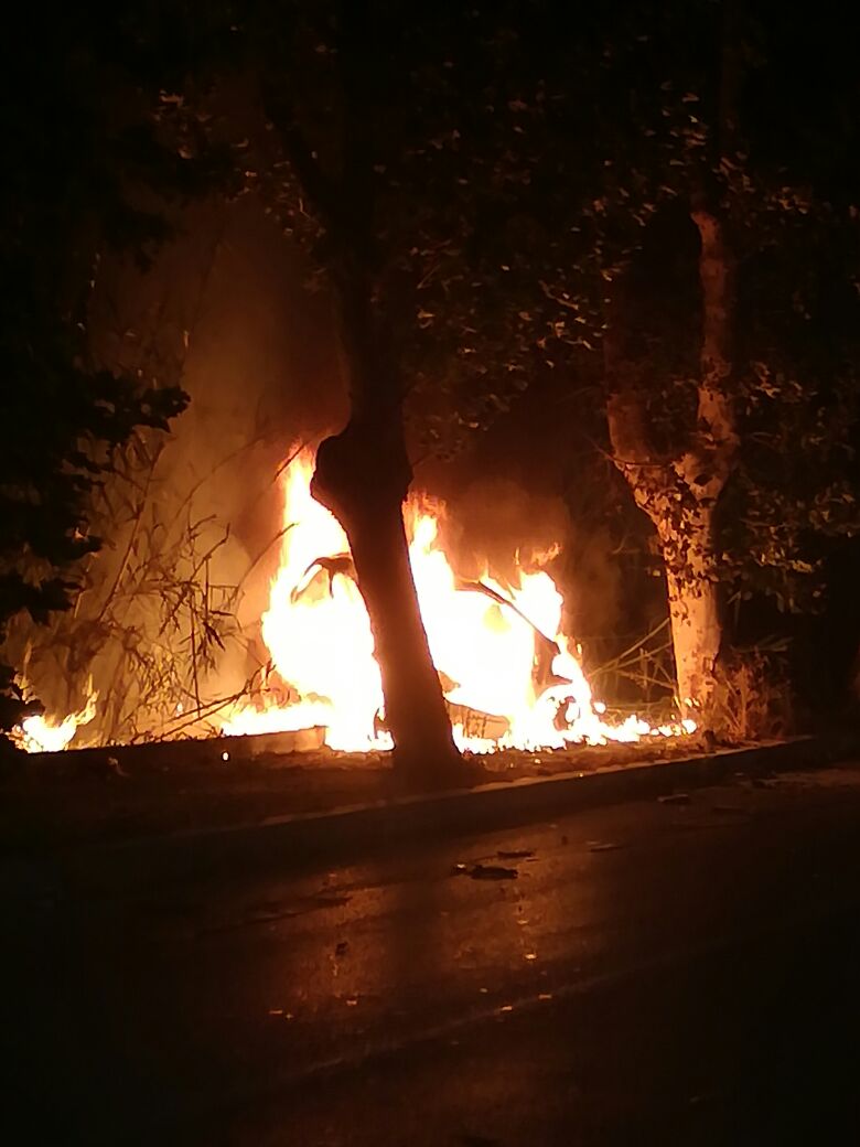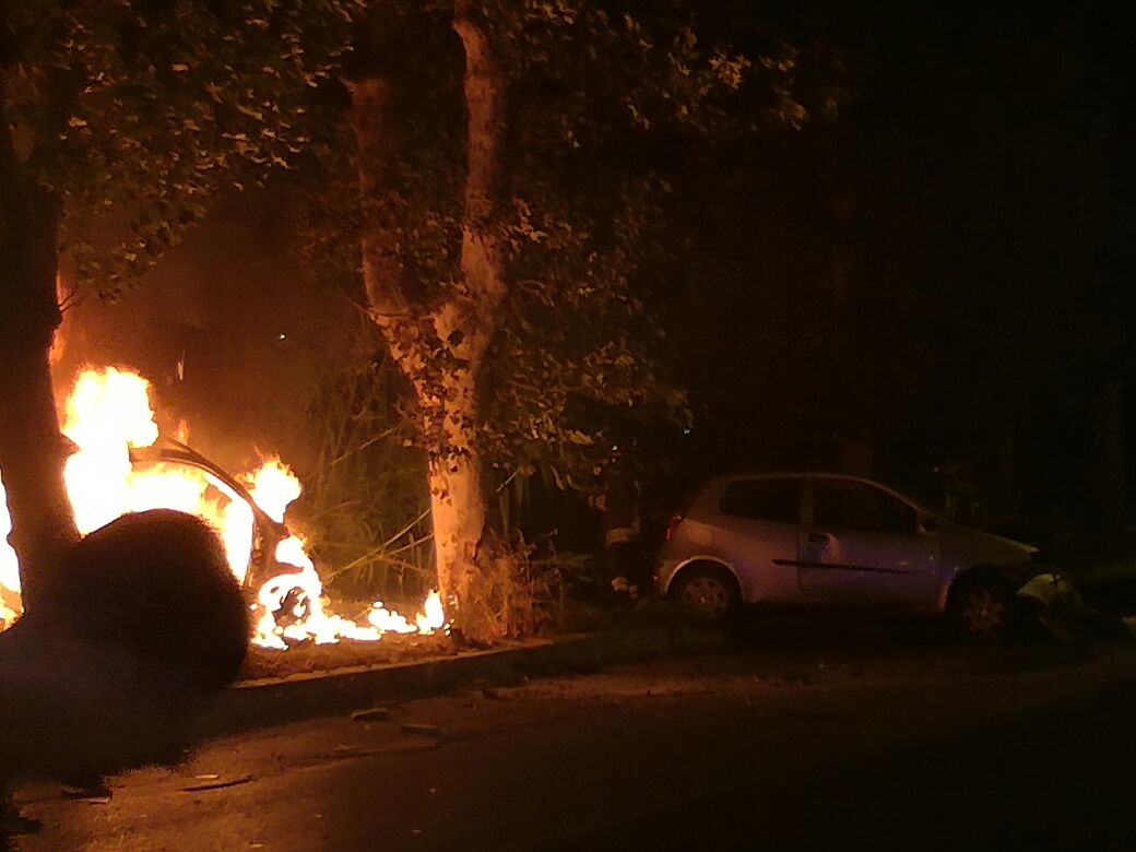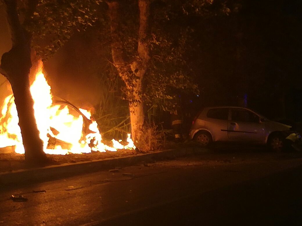 Ad aiutarlo nell’eroica impresa un cittadino di nazionalità nordafricana. I vigili del fuoco hanno domato l’incendio della macchina che come potete vedere, alla fine del reportage fotografico, dopo l’incendio e l’intervento dei vigili del fuoco, ne resta solo la carcassa.