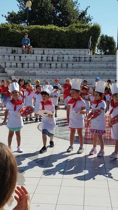 La classe II ha realizzato anche un’uscita per imparare a impastare la pizza dai pizzaioli di Babylon , infatti li vediamo con cappello e grembiuli da cucina, anche per l’altra attività scolta in gruppo la preparazione dei dolcetti del buffet, che sono stati molto apprezzati.Commovente la parte di chiusura della manifestazione con il sottofondo musicale della canzone di successo mondiale we are the world con lo striscione ” Esite un cerchio perfetto si chiama ABBRACCIO ”