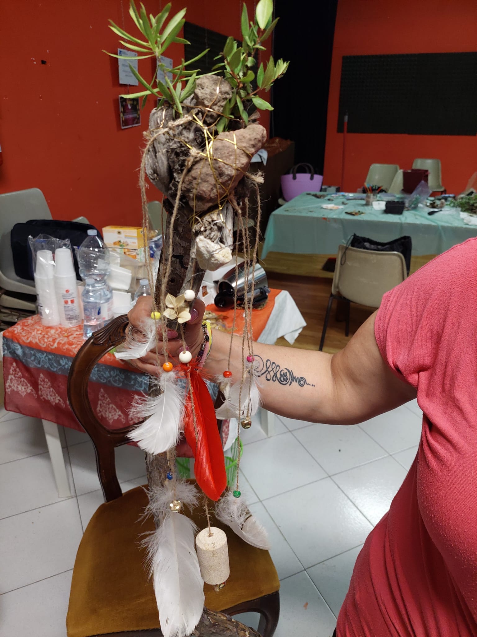 Infine a chiusura degli eventi estivi è stato realizzato il laboratorio per la costruzione del Bastone Sciamanico, sempre inerente all’arte Sciamanica per la Crescita Spirituale. Il Bastone Sciamanico è uno strumento utilizzato nelle pratiche sciamaniche per facilitare la connessione con il mondo spirituale, dirigere l’energia e proteggere il praticante. Ogni bastone è unico e riflette l’identità e le intenzioni del suo creatore.