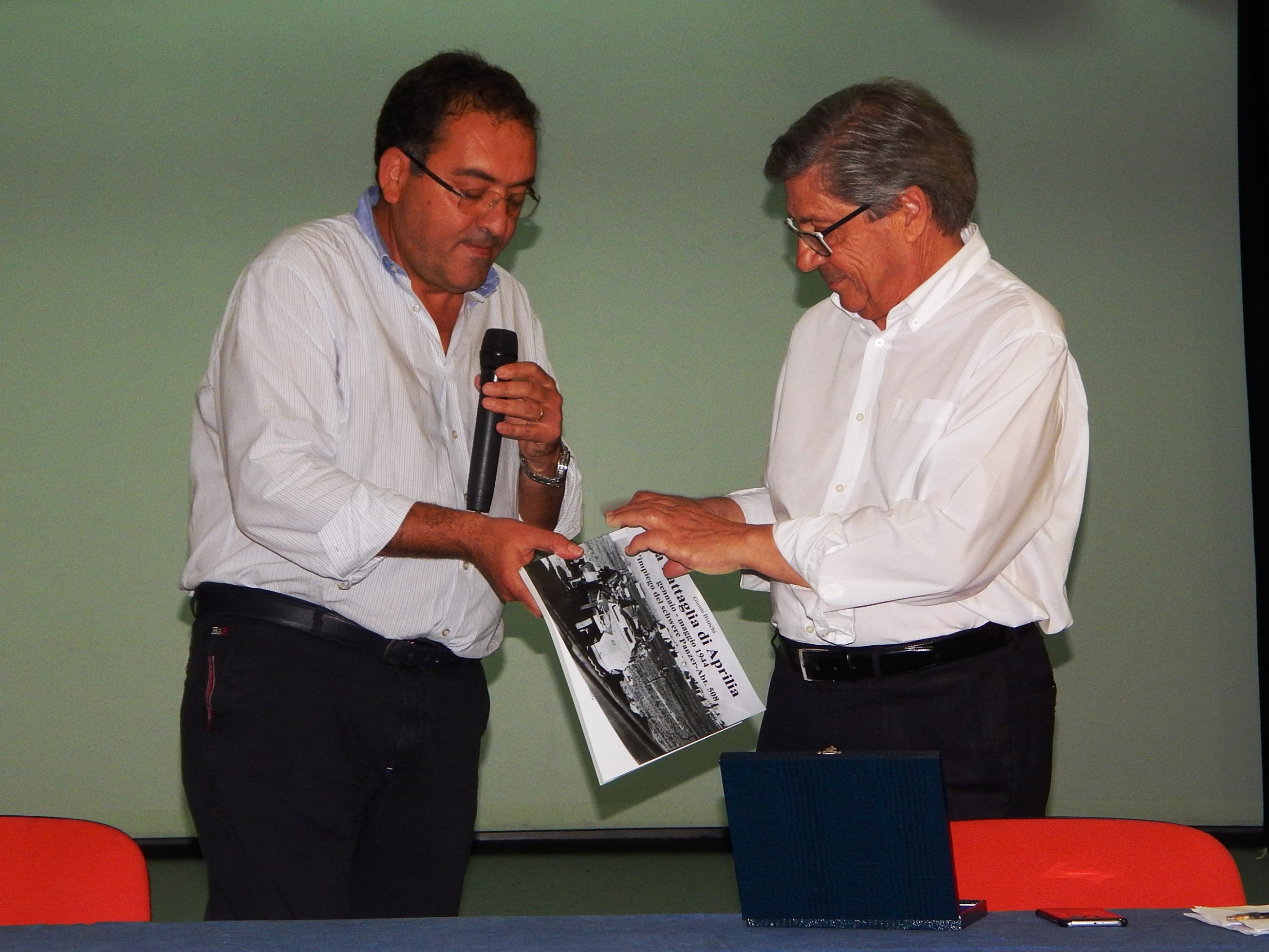 Il Sindaco, nello spendere parole di elogio per l’attività svolta dal professor Giusfredi e per la sua eredità di professionalità, sensibilità ed educazione, ha fatto dono allo stesso di una copia del libro “La Battaglia di Aprilia” di Gianni Bianchi e di una scultura in terracotta a tiratura limitata raffigurante il logo dell’80esimo della Fondazione, realizzato per il Comune di Aprilia dalle detenute della Casa Circondariale di Latina nell’ambito di un progetto artistico a loro dedicato.