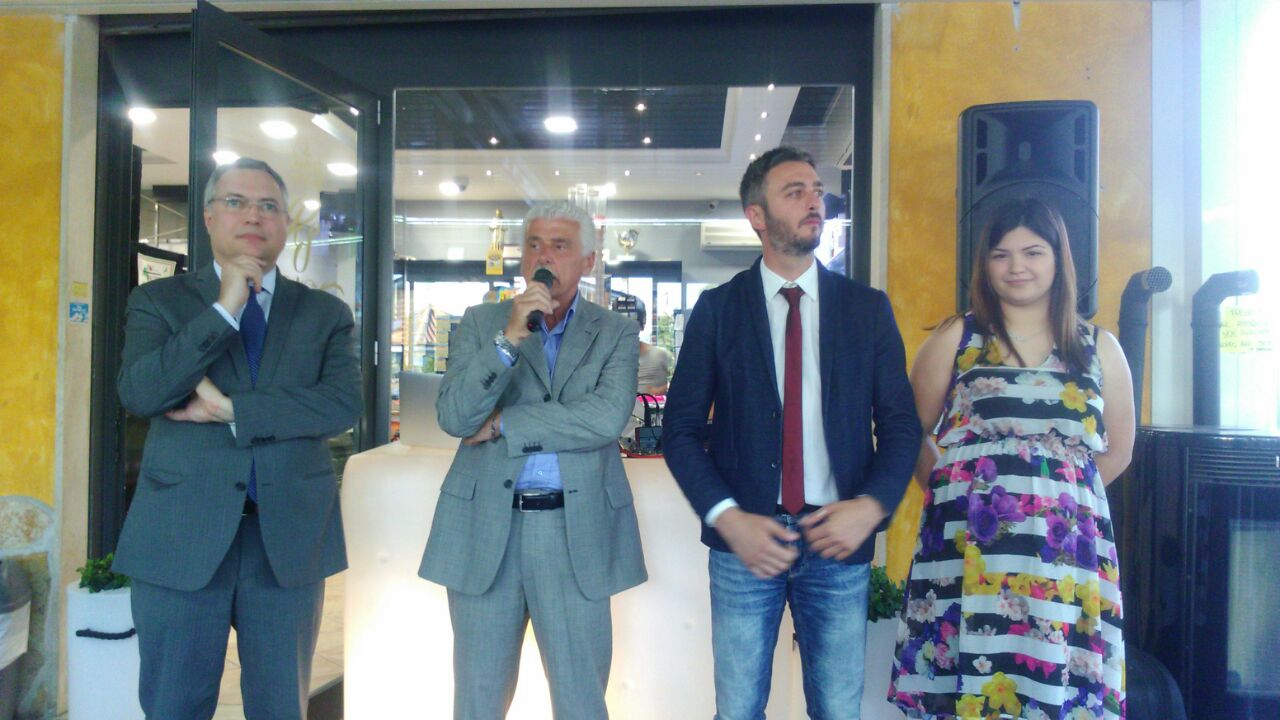 Riccardo Iotti assessore uscente della scorsa amministrazione con Sabrina Scarponi imprenditrice ( titolare delle Pasticceria Salernitana del litorale , che vediamo nella foto sopra , mentre riceve il Premio Valore Aggiunto in Fiera di Essere donna consegnato l’8 maggio 2016 a Torvaianica ) , hanno presentato le ragioni della loro candidatura.