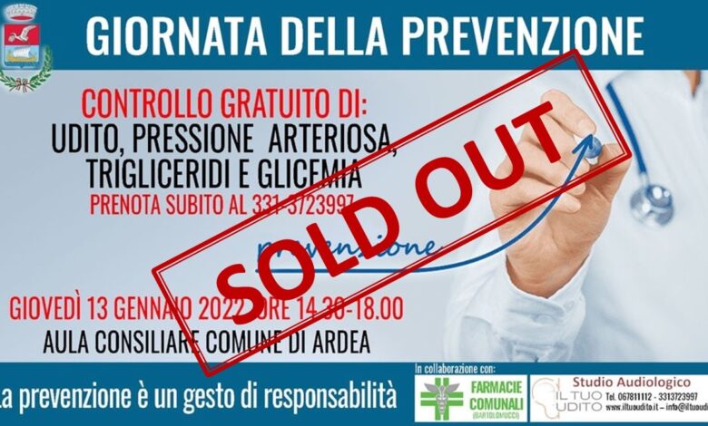 Il Comune di Ardea informa di aver   raggiunto il massimo delle prenotazioni per la giornata di prevenzione che si svolgerà in sala consiliare giovedì 13 Gennaio.