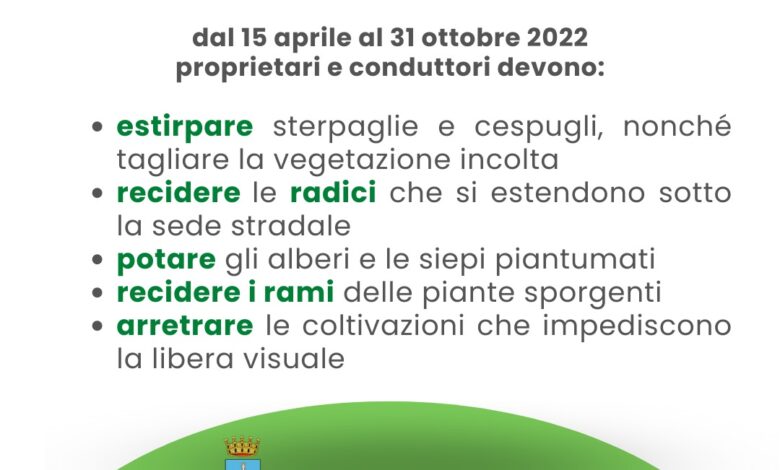 Per arginare il rischio che i terreni incolti, recintati e non, ubicati sia all’interno che all’esterno dei centri urbani con presenza di rovi, erbacce ed arbusti, possano creare un problema di igiene pubblica e di rischio per la proliferazione di animali nocivi con conseguente pericolo per l’incolumità delle persone e dei beni, e per prevenire il rischio incendi, il Sindaco di Ariccia Gianluca Staccoli ha ritenuto necessario emettere un’ordinanza con la quale dispone che i proprietari e/o conduttori di aree non coltivate, di aree verdi incolte, i proprietari di case e gli amministratori di stabili con annesse aree a verde, i responsabili dei cantieri edili e stradali, i responsabili di strutture turistiche, artigianali e commerciali con annesse aree pertinenziali ed in ogni caso tutti i soggetti che vantano un diritto soggettivo in aree simili, provvedano a mantenere falciate e tenute in modo decoroso le aree a verde, al fine di prevenire il degrado dei centri urbani e l’insorgenza di problemi igienico sanitari. Fino al 31 ottobre 2022, quindi, i cittadini di Ariccia saranno tenuti a occuparsi della manutenzione e della tutela delle aree verdi di loro proprietà tenendo conto che l’inosservanza di tali disposizioni è punita con il pagamento della sanzione amministrativa pecuniaria pari a 100€.