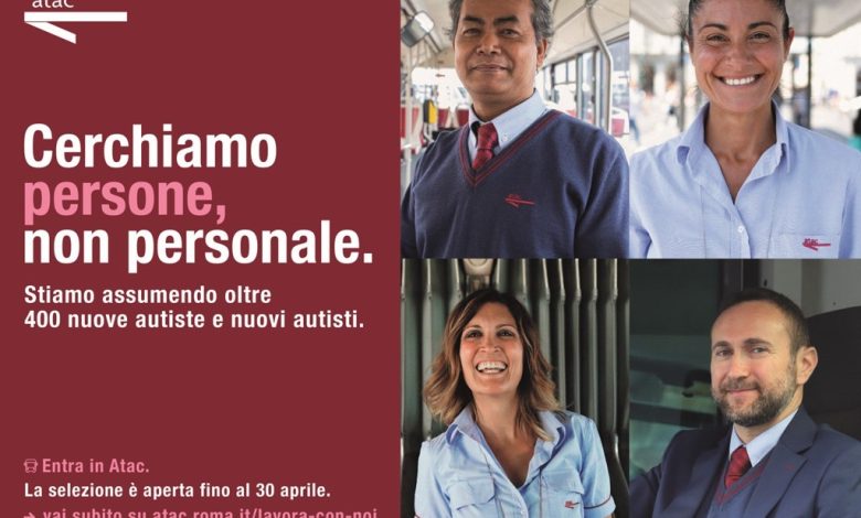 Parte campagna informativa. La call per la selezione sarà accompagnata da una campagna informativa mirata ad attrarre tutti i potenziali candidati, anche oltre il territorio romano. La campagna, con un forte slancio inclusivo, pone al centro valore e unicità della persona in quanto individuo, infatti colei o colui che conduce un mezzo ha la responsabilità dei passeggeri e, al contempo, quella di offrire il miglior servizio possibile, nell’ambito delle sue mansioni. Da qui lo slogan “Cerchiamo persone, non personale”.