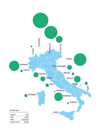 (Adnkronos) – Sono quasi 2,9 milioni gli alberi piantati in Italia tra il 2022 e i primi mesi del 2023 su una superficie di 4.504 ettari, pari a circa 6.500 campi di calcio. È quanto emerge dalla terza edizione dell'Atlante delle Foreste, l’indagine condotta da Legambiente con il supporto tecnico di AzzeroCO2 e Compagnia delle Foreste per Il Sole 24 Ore. I dati provengono dagli oltre 730 macro-progetti di nuove forestazioni urbane ed extraurbane censiti su tutto il territorio nazionale ed effettuati con fondi pubblici (decreto clima, Pnrr, fondi regionali o provinciali) e risorse private. Si tratta di un patrimonio verde spesso sottovalutato ma fondamentale, come posto in evidenza dalla ricerca che indaga i diversi "servizi ecosistemici" offerti dalle foreste. Le nuove aree verdi – si legge nel report – sono infatti in grado di generare un beneficio complessivo del valore di oltre 23,5 milioni di euro per ciascuno degli anni di vita degli impianti arborei ed arbustivi messi a dimora. Attraverso un’analisi approfondita, l'Atlante delle Foreste vuole offrire una panoramica dettagliata del ruolo cruciale che i nuovi progetti di forestazione sono in grado di generare nel sistema economico e sociale italiano, al di là della loro fondamentale funzione di assorbimento della CO2. I dati, raccolti con la collaborazione di Compagnia delle Foreste, sono stati analizzati secondo una metodologia di calcolo elaborata da AzzeroCO2 e che si basa sull’analisi di oltre 3.783 articoli scientifici pubblicati sulle principali riviste di settore tra il 1996 e il 2020. Tante le note positive, ma anche le criticità ancora da superare. Tra i principali benefici generati per i territori dalle nuove opere di forestazione figurano la mitigazione di eventi climatici estremi e la regolazione della qualità dell'aria e del suolo, di cui è stata stimata un'incidenza economica positiva di 2.202,9 euro per ettaro all'anno. Ma non solo. L’Atlante delle Foreste rileva in maniera significativa anche l’impatto generato in termini di turismo sostenibile e attività culturali, con una valutazione di 639,2 euro per ettaro anno. Emerge, inoltre, un altro valore che è fondamentale sottolineare e che non è legato direttamente all’uso delle aree. Parliamo del garantire, grazie alle attività di forestazione, la disponibilità della biodiversità e del funzionamento degli ecosistemi forestali per le generazioni future. In questo caso la stima individua un apporto di ben 2.342,5 euro per ettaro ogni anno. Tra i dati più significativi posti in evidenza non vi sono solo quelli relativi ai vantaggi complessivi. Interessante è anche analizzare come i diversi territori abbiano agito negli ultimi mesi e quali criticità si presentino nel raggiungere gli obiettivi di forestazione stabiliti dal Piano nazionale di ripresa e resilienza (Pnrr).
