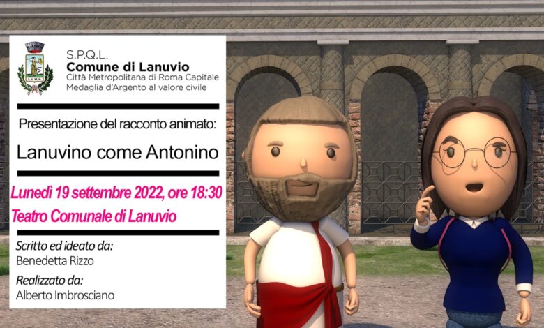Il prossimo 19 settembre, presso il teatro comunale di Lanuvio, verrà presentato il cortometraggio “Lanuvino come Antonino. Un incontro inaspettato”. Si tratta di un’animazione di circa 20 minuti che vuole far conoscere l’imperatore Antonino Pio, nato a Lanuvio il 19 settembre dell’89 d.C., e qui ricordato ogni anno con la manifestazione “Buon compleanno Antonino!” giunta quest’anno alla quarta edizione.