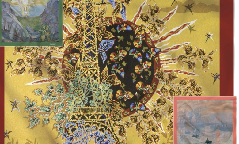 L’esposizione, attraverso più di 100 opere, vuole ripercorrere le modalità attraverso le quali il sole è stato rappresentato, partendo dall’antichità e arrivando ai giorni nostri. La limited edition si compone di tre foulard in seta che rappresentano le opere più significative della mostra, l’opera principe è quella di Claude Monet “Impression, soleil levant” a seguire “Le soleil” di Edward Munch e “Soleil de Paris” arte tessile di Jean Luçart.