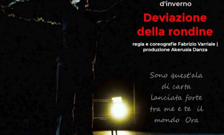 Libertà, volo, vita: se c’è un’arte, più delle altre, capace di restituire la sensazione estetica, ma anche intima della libertà, quella è la danza. Nell’ambito dei Giovedì della danza al Teatro Summarte, il 17 novembre, ore 21.00, Oltre la linea d’inverno presenta Deviazione della rondine, un progetto di Akerusia Danza ispirato al volo delle rondini che mitologicamente simboleggiano la liberazione e il ritorno alla vita.