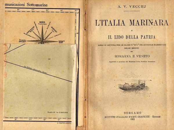 L’ECO, LA MARINERIA ITALIANA E IL LIDO DELLA PATRIA – Mi piace ricordare che la nostra testata, L’ECO DEL LITORALE, trae origine proprio dallo stesso pensiero ispiratore che dette spunto a questo volumetto del 1901, dove si trova un concentrato d’amore per quell’angolo di Mediterraneo in cui s’incontrano storia, cultura, diverse tradizioni, tecniche di pesca, l’andar tra le onde e le rime di una increspata poetica … Da Dante, nella Pineta di Ravenna, foresta del suo “divino” Purgatorio (…”Ed ecco più andar mi tolse un rio/ Che inver sinistra con le sue piccole onde/ Piegava l’erba, che in sua ripa uscìo/ Tutte l’acque, che son di qua più monde/ Porrieno aver in sé mistura alcuna / Verso di quella, che nulla nasconde.”…) al Tasso nel Delta del Po “Come il pesce colà, dove s’impaluda / Nei seni di Comacchio il nostro mare / Fugge dall’onda impetuosa e cruda /Cercando in placide acque ove ripare… “ a Garibaldi che, in fuga da Roma con Anita ed un manipolo di patrioti, nel 1849, diretto a Venezia, passando per Cesenatico , braccato dalle navi austriache, a levante della punta di Goro, al rombo delle cannonate, invertita la rotta del suo bragozzo, raggiunge di nuovo la costa e racconta: ” Comunque fosse noi approdammo. Io presi la mia compagna tra le braccia, sbarcai e la deposi sulla sponda…”. Insomma, un mirabile scrigno di preziose note destinate alla lettura per i ragazzi delle classi 4° e 5° elementari, che all’epoca fruivano anche delle Ginnastica Educativa, istituita dalla Legge De Sanctis ventitré anni prima ed erano oggetto delle attenzioni una straordinaria innovatrice come Maria Montessori.