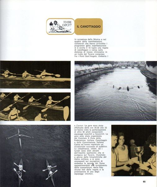 DAL NUOTO,TORNO DUNQUE ALLE VIE D’ACQUA E AL TEVERE, MANTENENDO IL TEMA DI SPORT&TURISMO, CHE IN COMBINAZIONE CHIMICA CON I BENI CULTURALI E’ STATO E RIMARRA’ OGGETTO DI UNA GRANDE AZIONE DI RILANCIO PER LE ATTIVITA’ SOCIALI, PER LA SALUTE PSICOFISICA E NON ULTIMO PER L’ECONOMIA DEL NOSTRO PAESE CON IL PROGETTO “STET”, CONDIVISO TRA BESPORT E CNIFP, CONI REGIONI E CIF, USSI ED ANCI. TROPPE VOLTE ABBIAMO INTUITO E IMBOCCATO LA VIA GIUSTA PER POI ABBANDONARLA SENZA UNA COMPRENSIBILE RAGIONE. COLGO LO SPUNTO DAL MIO LIBRO DEL GIORNO, QUELLO REALIZZATO NEL 1978 DALL’ISTITUTO NAZIONALE PER LE TRADIZIONI POPOLARI, DOPO LA “MOSTRA DELLE REGIONI D’ITALIA” IN OCCASIONE DI “TEVERE EXPO’77”.