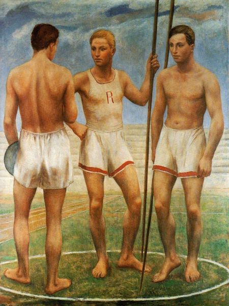 GIOVEDI’ SCORSO HO FATTO L’ENNESIMA VISITA ALLO STUDIO CANOVA/TADOLINI IN VIA DEL BABUINO; UN ESEMPIO FANTASTICO DI COME SI POSSANO VALORIZZARE I NOSTRI INESAURIBILI GIACIMENTI CULTURALI. PER LA PRIMA VOLTA MI SONO SEDUTO ACCANTO AD UNA DELLE TRECENTO OPERE A FIRMA DI CANOVA, THORVALDSEN, E DELLA INTERA FAMIGLIA DEGLI SCULTORI TADOLINI (ADAMO, SCIPIONE, GIULIO ED ENRICO) UNA PARTICOLARE, PERCHE’ SI TRATTA DEL “GESSO” PER LA STATUA DEL CORRIDORE CUBANO PANCHO ARANGO, FIRMATA DA ENRICO NEL 1955 E COLLOCATA DI FRONTE A QUELLA DI PAPA LEONE XIII. QUESTO OCCASIONALE INCONTRO, MI HA FATTO TORNARE ALLA MEMORIA LA BELLISSIMA MOSTRA DEL 2004 “ARTE E SPORT NEL ‘900 ITALIANO”, ORGANIZZATA NEL CHIOSTRO DEL BRAMANTE, AD UN PASSO DA PIAZZA NAVONA, ALIAS STADIO DI DOMIZIANO. IN ATTESA DI NUOVI EVENTI DI TALE FORZA EMOTIVA-EVOCATIVA, OLTRE AL “CORRIDORE” DI TADOLINI, VI PROPONGO LA COPERTINA DEL CATALOGO E “ALLO STADIO”, UN DIPINTO DI UBALDO OPPI (1930).