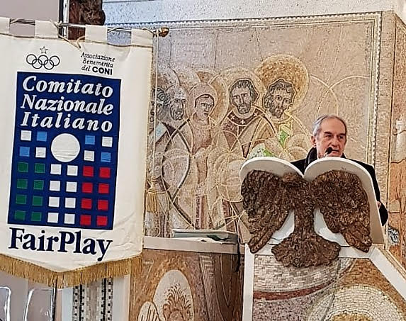 CIAO GIOVANNI ! – Con la dichiarazione degli affetti da parte di centinaia di amici ed estimatori, Giovanni Maialetti ha raggiunto il traguardo definitivo ed il podio più alto, quello che spetta agli umili promotori della cultura sportiva, come straordinaria opportunità sociale. Ogni qualvolta gli alfieri rinnoveranno la squilla, Giovanni tornerà ad essere con noi. Il prossimo appuntamento è stato già fissato per il 22 maggio nel Salone d’Onore al Foro italico, quando lui sarà ideale protagonista della Giornata dedicata a “SPORT, VALORI, FAIR PLAY”. Alle esequie erano presenti moltissimi rappresentanti della stampa sportiva, dirigenti del CONI, delle Federazioni, degli Enti di Promozione e delle Associazioni Benemerite con il CNIFP in prima fila, rappresentato dal Con. Naz. Perazzini. il S.G. de Tommaso e il Presidente Alcanterini. (Nelle immagini, gli interventi del figlio Maurizio, del gen. Martini, di de Tommaso e Alcanterini).