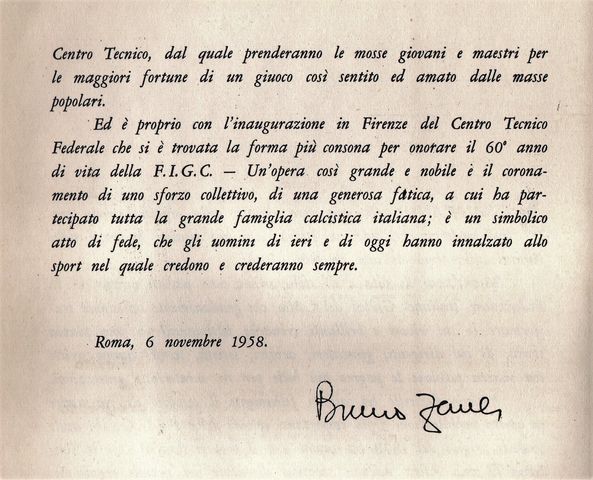 L’ATLETICA E IL CALCIO, ORO DELLO SPORT – In questo volumetto del 1958, acquisito dal Centro Studi Documentazione e Ricerche ALTIS/CNIFP, si sintetizza il concetto che calcio e atletica possono costituire un’accoppiata vincente ,tra discipline, purché siano guidate da menti illuminate. I sessant’anni di storia della FIGC sono qui riassunti dalla prosa efficace di Antonio Ghirelli, con la prefazione del Commissario di allora, nientemeno che Bruno Zauli. Il suggello nell’ultima di copertina, con il profilo commemorativo del più grande mentore di tale possibile sinergia, è quello del Marchese Luigi Ridolfi, illuminato dirigente e mecenate, padre putativo di fasi tra le più felici e belle per la storia delle due Federazioni, appunto la FIGC e la FIDAL.