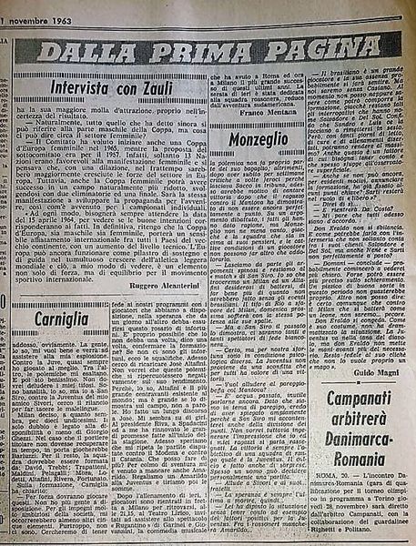 Come sapete, per aver avuto il privilegio di essere chiamato da lui, di conoscerlo e frequentarlo, sia pure per pochissimo tempo, conservo ad oggi un’autentica venerazione per Bruno Zauli, uomo pilastro del movimento sportivo italiano, delle cui idee e del cui insegnamento avremmo dovuto e potremmo ancora fare tesoro, nonostante sia volato in Borea in quel di Grosseto il 7 dicembre del 1963, in procinto di traguardare appena sessantuno anni. Giusto il 7 dicembre del 1945 era nata mia sorella Paola, donna straordinaria, scomparsa un mese fa, lasciandomi a sorpresa una pingue raccolta di pagine della “rosea”, La Gazzetta dello Sport, per la quale avevo scritto dal 1962 al 1969 e per la quale avevo intervistato Bruno Zauli il 21 novembre del 1963, appena diciotto giorni prima che il suo cuore generoso si arrestasse in occasione della inaugurazione del Campo Scuola in Maremma. Ritrovare quel pezzo di vissuto con Zauli, molto soddisfatto, felice per l’approvazione del suo progetto di Coppa Europa, testimoniato in prima pagina, è stato per me l’ennesimo dono, la prova che la pazienza o se volete la follia di conservare la memoria può contribuire in modo significativo alla composizione di un mosaico unico e irripetibile , come quello della storia. Così, di colpo, mi sono reso conto, ancora una volta e di più, di quel che abbiamo perso per lo sport non soltanto italico e in particolare per l’atletica leggera. Per quanto mi riguarda, devo aggiungere che quella non era la prima occasione che il Segretario Generale del CONI mi faceva chiamare dal fido Giannetta , ma che in precedenza mi aveva anticipato il progetto ed il regolamento della Coppa con una intervista esclusiva – sempre mio tramite – con l’Agenzia Italia, spiazzando il suo amico Gualtiero Zanetti, che corse ai ripari, chiamandomi alla redazione romana de La Gazzetta, giusto nell’agosto del 1962. E poi, cosa volete pensare, quando si realizza una congiuntura astrale “marchigiana”, come quella che mi riguardò in quel periodo, quando all’anconetano Zauli si aggiunse, nel novembre del 1962, il recanatese Giacomo Brodolini che, su suggerimento del pesarese Probo Zamagni, con le chiavi del suo studio in Via del Corso, mi consegnò le carte e le sorti dell’Associazione Italiana Circoli Sportivi, quella che aveva fondato con Matteo Matteotti, che sei anni dopo avrebbe generato Pietro Mennea e partecipato in modo significativo al “Rinnovamento” della FIDAL, alla elezione di Primo Nebiolo…