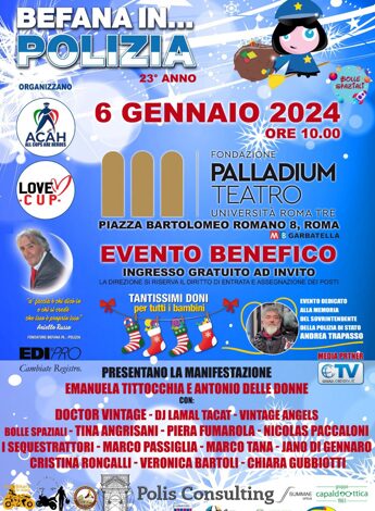 Epifania: la ‘Befana In… Polizia’ quest’anno arriva in moto al Teatro Palladium di Roma