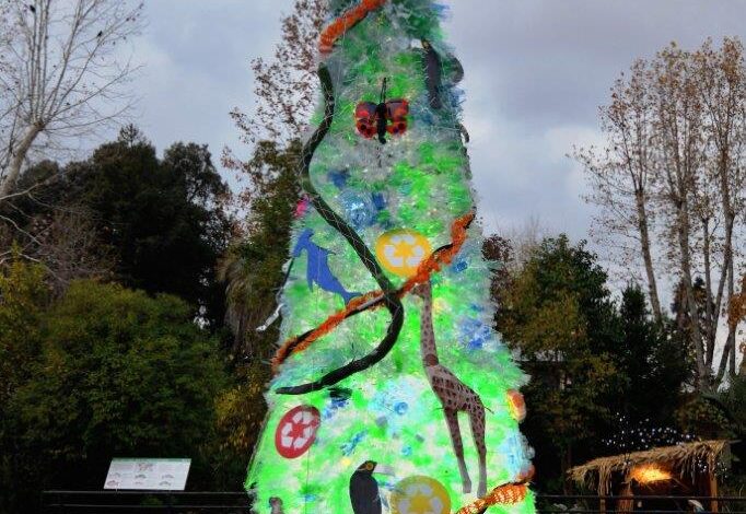 Natale all’insegna dell’ambiente al Bioparco di Roma, dove dall’8 è possibile ammirare un albero di Natale speciale, una installazione realizzata esclusivamente con materiali di scarto, per lo più plastica. L’albero del riciclo è stato inaugurato oggi dall’assessora all’Ambiente di Roma Capitale Sabrina Alfonsi, insieme alla Presidente del Bioparco Paola Palanza, si trova su Largo Vittorio Gassman, il piazzale dinanzi le biglietterie del Bioparco, al quale si accede senza biglietto di ingresso. È alto 7 metri ed è composto da 2.500 bottiglie di plastica, recuperate da attività commerciali, case private e dai visitatori del Bioparco. Le bottigliette sono lavorate una ad una e legate ad una struttura di ferro recuperata da scarti di lavorazione. Gli addobbi riproducono alcuni animali ospiti del parco, in particolare le specie maggiormente colpite dall’impatto della plastica nell’ambiente, come i pinguini, le otarie, le testuggini. Anche gli addobbi sono realizzati riciclando rifiuti con plastiche, insieme a scarti di lavorazioni industriali, edili ed artigianali come pannelli coibentanti, polistirolo dei cappotti termici, corrugati, cavi elettrici, ed altri materiali, tra cui molte lenze ritrovate nelle spiagge. Le luci sono a led a risparmio energetico. L’opera è stata realizzata dall’artista e biologa naturalista Alessandra Carratù.
