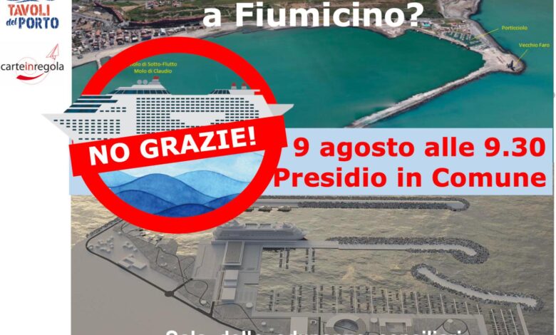 Fiumicino, Tavoli di Porto in presidio il 9 agosto al Comune: “Il Sindaco Baccini ha ufficializzato l’adesione al porto crocieristico”