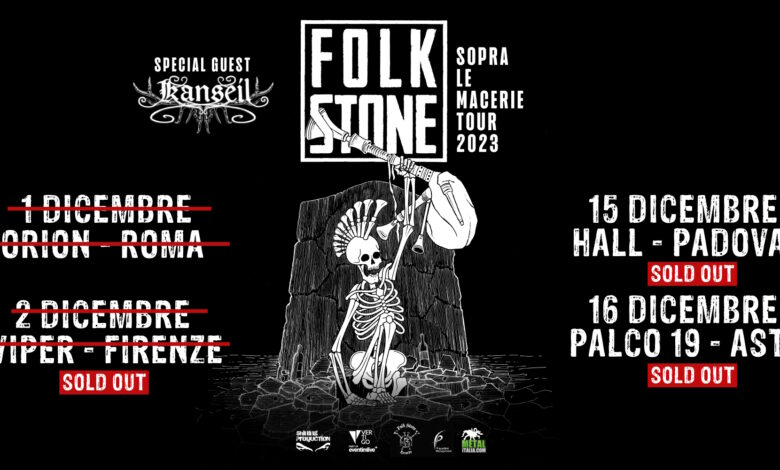 I FOLKSTONE faranno tappa all’Hall di Padova, il 15 dicembre e al Palco 19 di Asti, il 16 dicembre. Le due date sono già da tempo sold out.