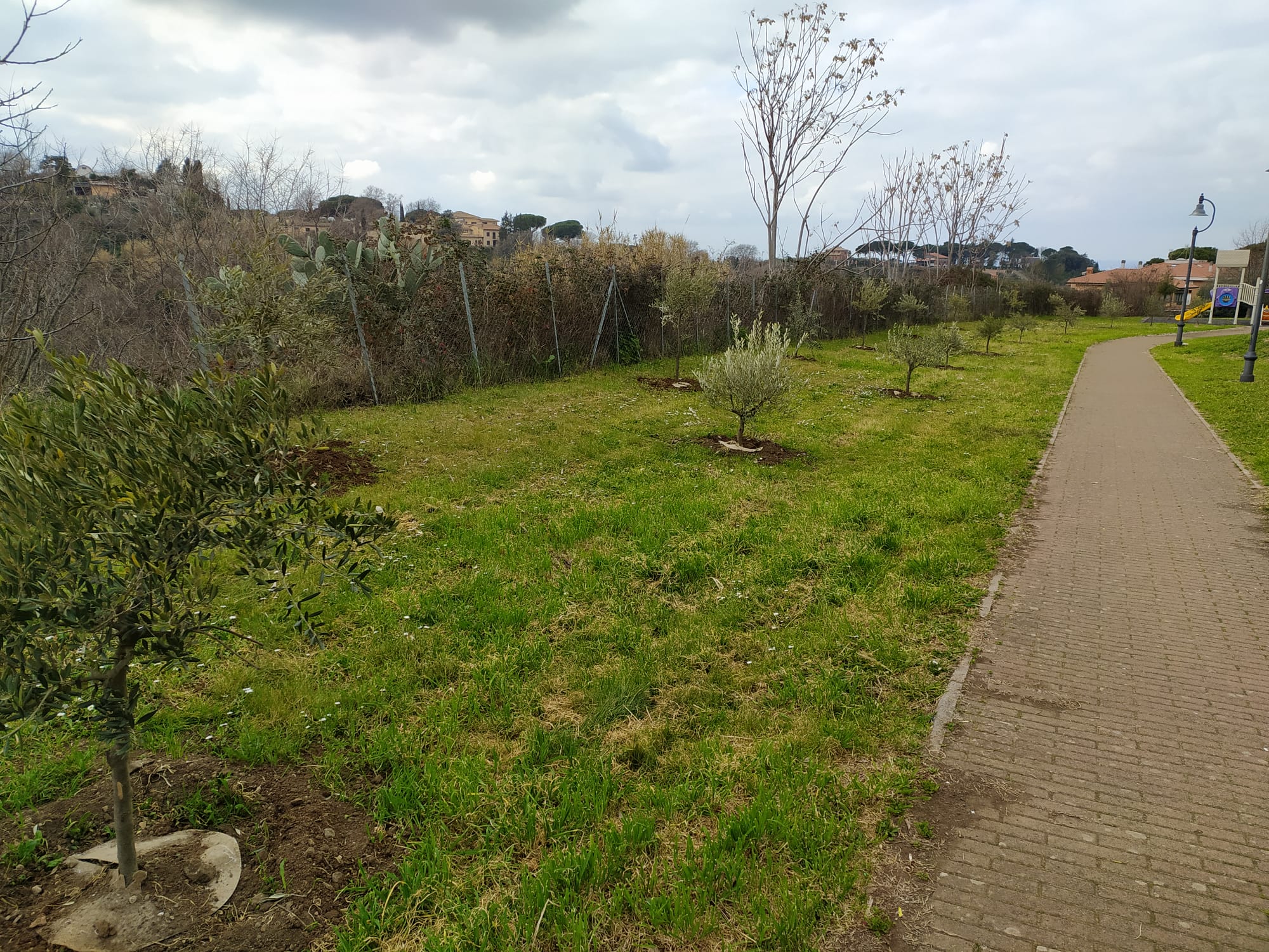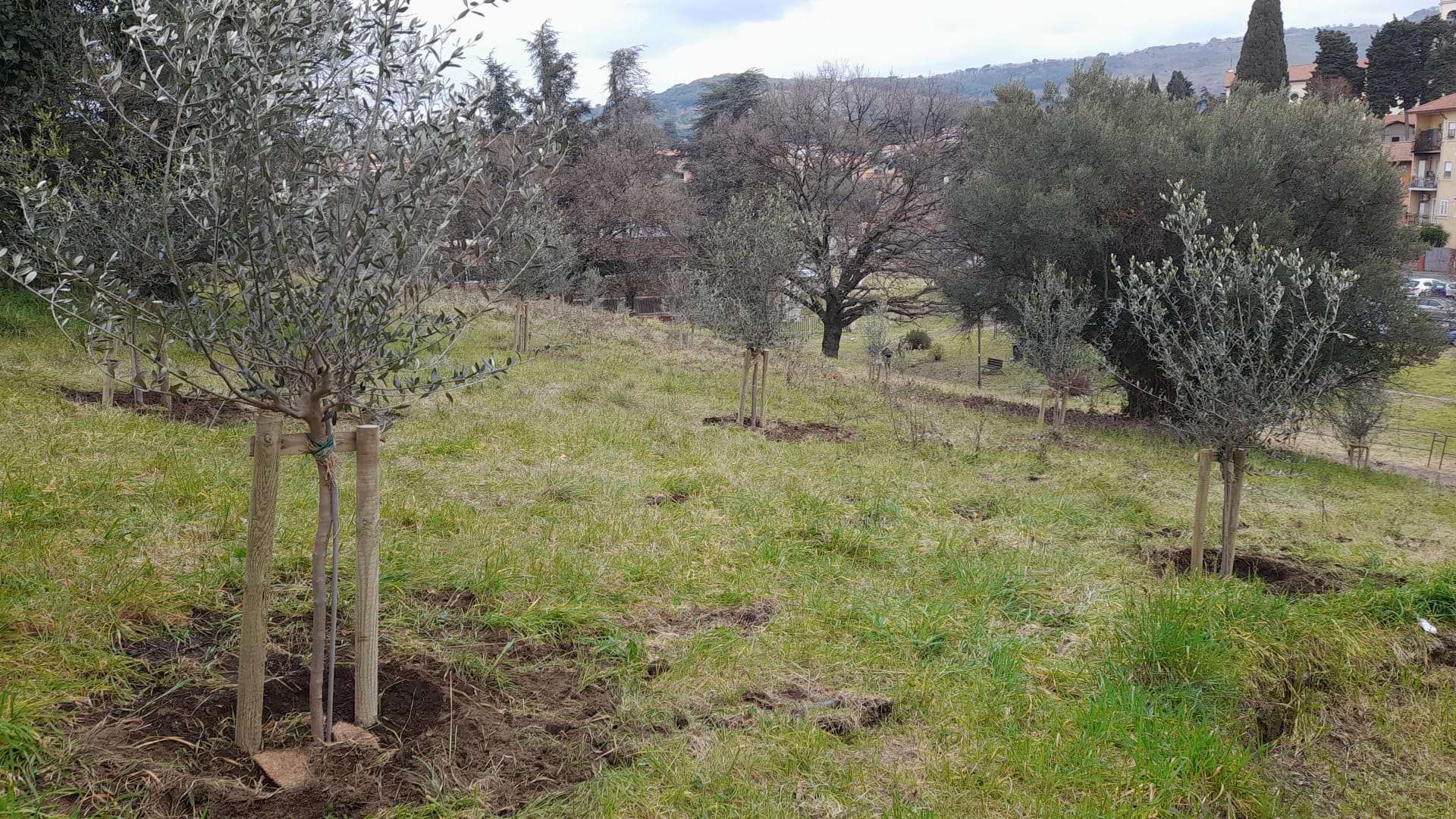 Questa mattina è terminata la piantumazione di 99 alberi di ulivo in località Colle Sant’Antonio, nell’area verde confinante con via Vecchia di Marino, che si aggiungono ai 42 esemplari piantati nei giorni scorsi presso il Parco degli Ulivi. Entro il mese di marzo, altri 43 nuovi alberi verranno piantati presso il Liceo Touschek e in località Borghetto, presso Parco Tinto Rocca su via Montiglioni.