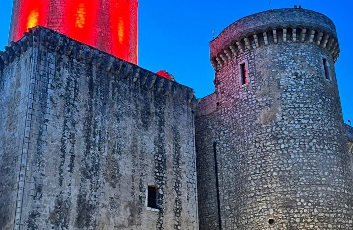 Il Castello di Fondi si illumina di rosso per ricordare la fondazione della Croce Rossa Italiana