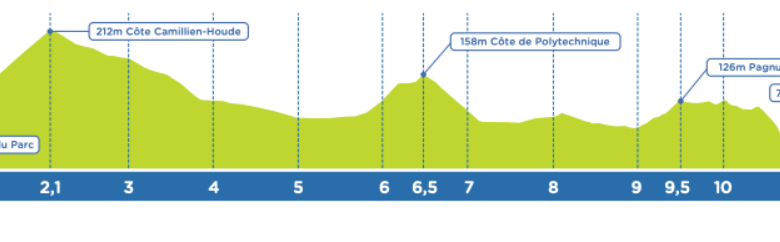 Il percorso sarà quello di sempre con la Côte Camillien-Houde lunga 1,8 chilometri con pendenze dell’8%, ad aprire le danze e successivamente la Côte de Polytechnique lunga 780 metri con pendenze al 6% e massime all’11% porterà i corridori ad avere un primo attacco importante. Rispetto alle passate edizioni il passaggio sul Pagnuelo lungo 534 metri con pendenze medie del 7.5% è l’unico cambiamento effettuato.