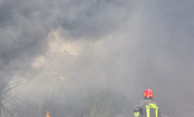 L’incendio ha interessato completamente l’area ed alcuni depositi che contenevano diversi materiali. Le operazioni di spegnimento e contenimento dell’incendio risultano alquanto difficoltose anche a causa del forte vento.