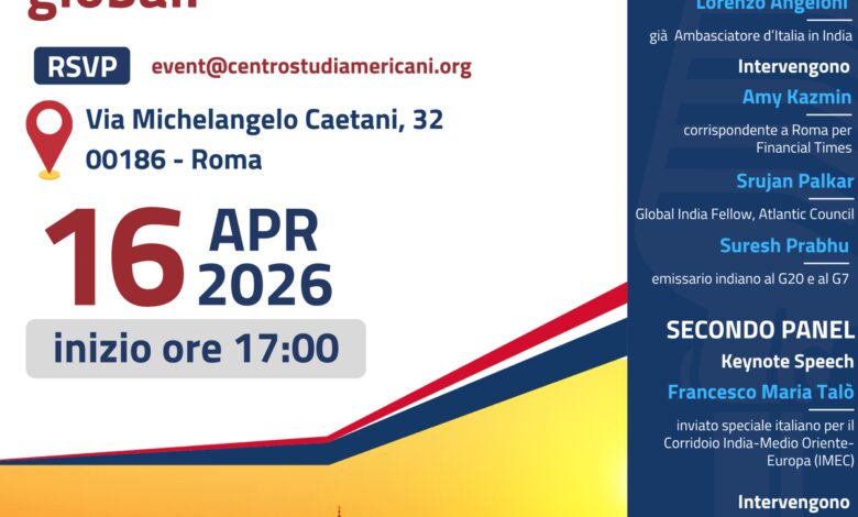 (Adnkronos) – Il prossimo 16 aprile alle 17 si svolgerà presso la sede del Centro Studi Americani, via Michelangelo Caetani, 32, Roma, l’evento “India potenza emergente: crescita, opportunità e impatti globali”. L’evento si propone di essere un confronto di alto livello sul ruolo dell’India come attore globale nei nuovi equilibri geopolitici ed economici, tra autonomia strategica, relazioni con il Global South e crescente centralità nelle dinamiche multilaterali e nei rapporti con le grandi potenze. L’evento mira ad offrire una lettura aggiornata e multidimensionale del “fenomeno India”, analizzandone traiettorie di crescita, ambizioni e principali sfide strutturali. Al centro del dibattito vi saranno i fattori che sostengono lo sviluppo del Paese, dal dinamismo demografico alla trasformazione digitale, fino al rafforzamento delle infrastrutture e delle politiche energetiche sostenibili.