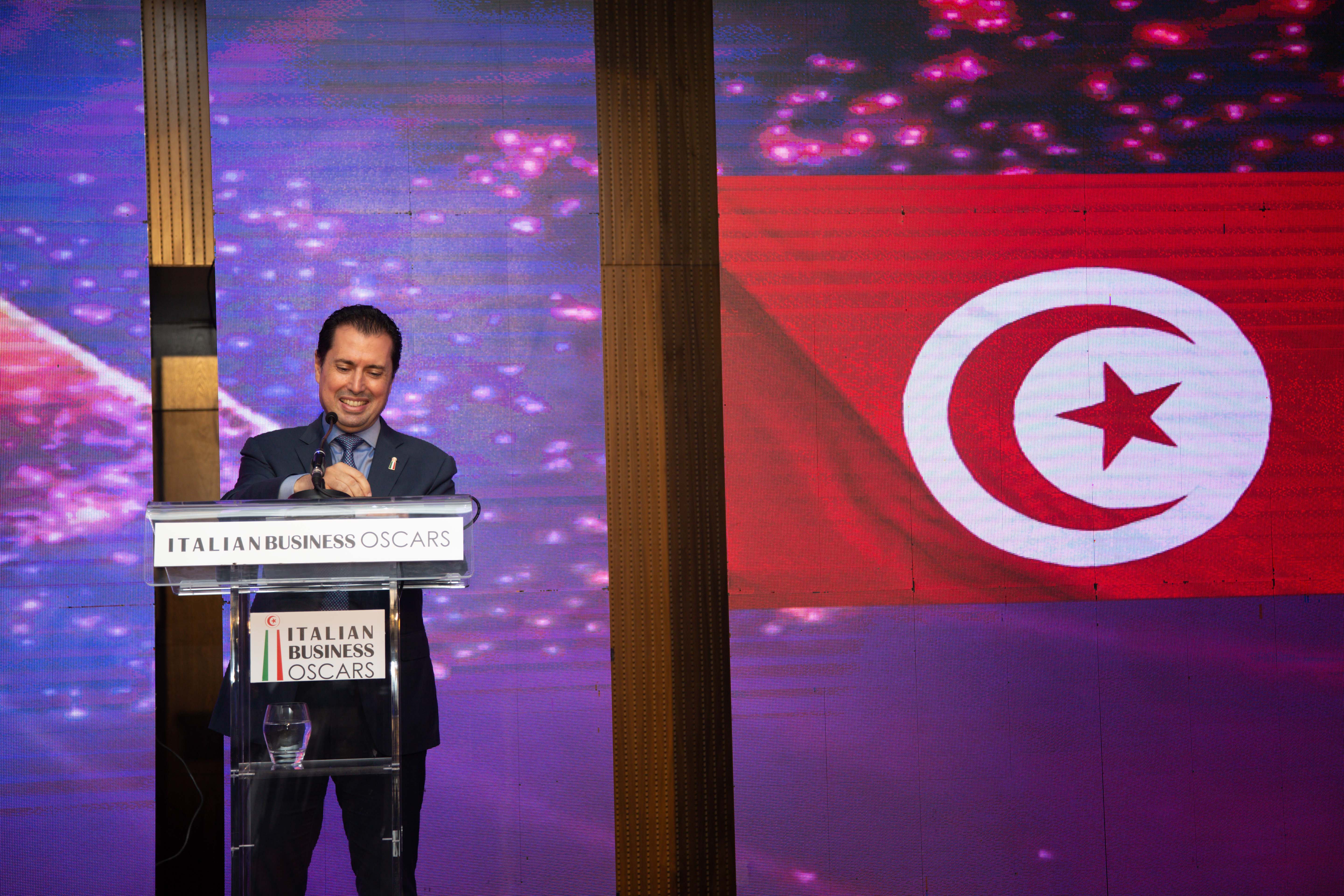 Il Consigliere Avvocato Aslen Berjeb prosegue: in Tunisia, abbiamo un numero importante di aziende, 800 aziende italiane suddivise tra aziende con capitale cento per cento italiano o misto con capitale tunisino. L’Italia è il secondo investitore in Tunisia. L’anno scorso ha superato la Francia con un sorpasso storico. L’Italia è diventata il primo fornitore in Tunisia e per l’olio, il nostro sogno è quello di avere l’Italia come primo cliente. Spezziamo una lancia in favore di questo. Un ringraziamento alle aziende italiane per quello che stanno realizzando , un riconoscimento per la loro attività in Tunisia. E’ questo il messaggio che vogliamo far passare con l’Italian Business Oscar.