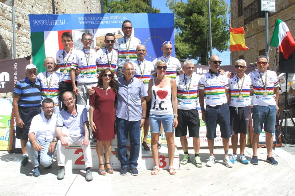 Ciclismo spettacolo e tante emozioni a Morro d’Oro (Te)accogliente e ridente cittadina in occasione dell’evento internazionale ciclismo amatori master e paralimpici su strada denominato “37° Mundialito Ciclismo Open“riservato alla Fci Enti Consulta Nazionali e Mondiali .Una competizione iridata,nella sua formula, unica al mondo aperta a tutte le categorie M/F nei valori fondamentali dell’amicizia, lealtà, sportività nell’etica Fair Play CONI e della accoglienza, molto gradita dai corridori e società partecipanti. Ad organizzare con il tradizionale impegno e passione sportiva per le due ruote la storica società ideatrice dell’evento iridato GS Spiga De rgopia’Oro di Morro d’Oro Presieduto dal carismatico Ing. Giuseppe Cav. Palladini detto il ”Cavaliere del Ciclismo”.I numeri della corsa iridata– 160 iscritti e 150 partenti per fasce di categoria. Nella prima fascia (ELMT M/1 – 2 – 3) da percorrere 96,00 Km. di cui 11 a passo turistico fino al nastro partenza ufficiale. Seconda fascia (M/4 – 5 – 6) Km72,00 di cui 11 a passo controllato come sopra. Terza fascia (M/7 – 8 – Woman – Paralimpici Tandem) Km. 48,00 come sopra. Il circuito agonistico (anello grande di Km. 23,00 a giro) impegnativo e selettivo d nello splendido e fiabesco habitat del Gran Sasso d’Italia e la famosa riviera adriatica di Roseto degli Abruzzi.Prima della partenza ufficiosa dalla grande Piazza Duca degli Abruzzi.,è stato osservato un minuto di raccoglimento alla memoria dei Caduti della Guerra e delle tragedie di Marcinelle (Belgio) e Rigopiano (Pe). Una cerimonia commovente. e tradizionale posa di una Corona di Alloro sul Ceppo dei Caduti di Morro d’Oro e Omelia con la speciale benedizione impartita dal Parroco Don Pasquale di Morro d’Oro, alla presenza del Presidente della Provincia di Teramo,Diego Di Bonaventura, Sindaca di Morro d’Oro Romina Sulpizi e Giunta Comunale. Consigliere Comune di Notaresco (Te) Leonardo Recchiuti Italo Canaletti in rappresentanza CONI Abruzzo. Prof .Piero Di Pietro Presidente CNIFP CONI Abruzzo. Una cerimonia suggestiva,commovente. e partecipata accompagnata dalle famose note del Silenzio e Tromba a seguire, Inno Nazionale Mameli. La partenza ufficiosa dal Piazzale Duca degli Abruzzi, veniva data dal Presidente della Provincia di Teramo e dalla Sindaca di Morro d’Oro. La sintesi della manifestazione svoltasi sotto una cappa di piombo a 40° Gradi : Nella prima fascia vittoria assoluta di Vincenzo Pisani (Euronix Team) Km 85,00 agonistici Tempo : 02.11.28 Media 43,810- A 10” Sistarelli Silvio; s.t Di Gaetano Nicolò.Nella seconda fascia successo pieno di Wladimiro D’Ascenziofamoso corridore di iridido del Mundialito (GC OMN Melania Faleria): Km. 61.00 Tempo: 01.43 .. Media: 41.640. A 11 ”Cannizzaro Luisiano; al 57 ”D’Antuomi Gianpietro. La terza e ultima vittoria assoluta di Michele Campili (Asd Angelini Cycling Team) Km. 37,00 agonisti: Tempo 01.13.49: Media: 39.0 01, A 08 ”l’indomabile Franco Martinelli di Pizzoli (Aq), recuperato a pochi metri dal traguardo. Il 12 “Francesco Segalini. Per la categoria unica ( Donne ) la vittoria in acqua Chiara Ciuffini (Team Isolmant) e Tandem Paraciclismo in Geremia Parrotto e Franco Magli (Team Calcagni di Lecce e Asd Ciclistica Due Torri). Ottima la Direzione Corsa curata dagli storici Filippo Di Pietro e Gabriele Di Giovanni. Giuria precisa e professionale. Al termine di una giornata a misura africana, dove al di la dei 40° accertati, i corridori in gara, hanno dato saggio di bravura, generosa caparbietà e fair play,onorando pienamente il Mundialito lo spettacolo ciclistico e la memoria dei Caduti della guerra, di Marcinelle e Rigopiano. È seguita sotto l’attenta regia della Segretaria Generale e Madrina del Mundialito D.ssa Francesca Palladini. Una cerimonia semplice e regale con paggetti ed Inno Nazionale, c la consacrazione ufficiale dei vincitori di categoria, maglia iridata e medaglia d’Oro Mundialito 2019. A seguire premiato il podio di categoria con medaglia d’Argento ai secondi classificati e medaglia di Bronzo ai terzi. Cala il sipario di una bella pagina di sport dove la manifestazione iridata rimane un grande patrimonio senza frontiere del ciclismo italiano amatoriale nel mondo. Un ringraziamento particolare alla Provincia di Teramo, che ogni anno in occasione del Mundialito provvede al rifacimento del manto stradale del circuito di gara, per dare maggiore garanzie alla sicurezza e integrità fisica dei ciclisti in gara. Un gesto di grande sportività solidale a sostegno del ciclismo su strada.