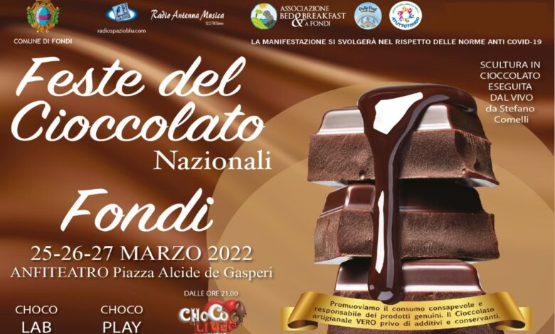 Una ventata di dolcezza sta per inebriare la città di Fondi che, dal 25 al 27 marzo, ospiterà la “Festa del Cioccolato artigianale”. L’appuntamento con le prelibatezze dell’Associazione “Choco Amore” è in piazza Alcide De Gasperi, dalle 10:00 a mezzanotte. Tra animazione, musica, degustazioni, irresistibili sculture e laboratori per grandi e piccini sarà una tre giorni di festa, divertimento e peccati di gola.