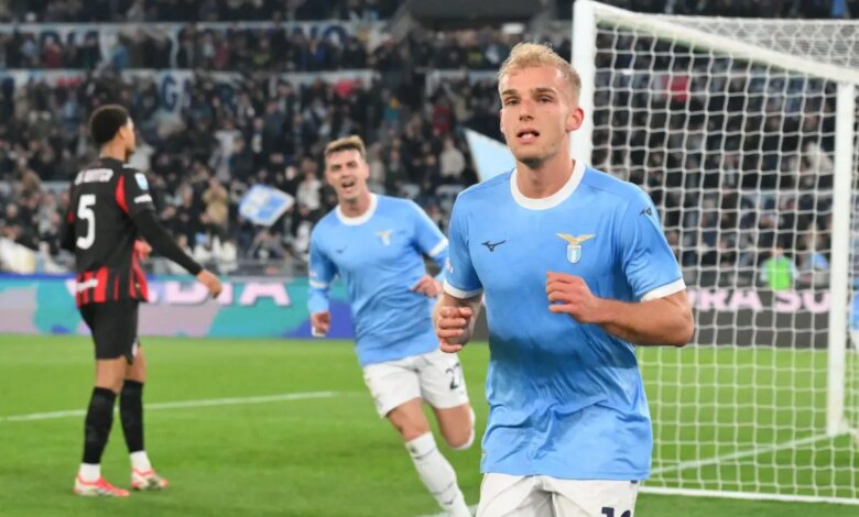 Parte meglio la Lazio, con Isaksen che si conferma uno dei migliori dei suoi nell’ultimo periodo e mette da subito in difficoltà il match-winner del derby Estupinan, mentre il Milan risponde con un’incursione pericolosa di Pavlovic, che era comunque in fuorigioco. La prima vera occasione da gol arriva al 12′ con Taylor che, da pochi metri, scarica il suo mancino e colpisce la traversa. I rossoneri sfiorano il gol al 23′ con il colpo di testa di Estupinan, che anticipa Isaksen ma manda fuori di poco. Dopo un’altra traversa colpita da Taylor, al 26′ arriva il gol che sblocca l’incontro: Marusic lancia in profondità per Isaksen, che vince l’ennesimo duello fisico con Estupinan e batte Maignan.