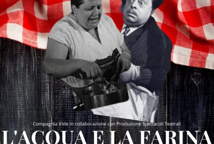 Sabato 15 alle 21,00 e domenica 16 ottobre alle 18,00, al Teatro Garbatella Piazza G. Da Triora, 15 – Roma, debutta lo spettacolo teatrale L’Acqua e la Farina e per la prima volta va in scena la storia dei fratelli Fabrizi, Aldo e la ‘Sora’ Lella. Il testo, inedito, scritto da Antonio Nobili con la collaborazione di Alessio Chiodini (con un intervento di Enrico Tamburini) che in doppio ruolo, gestisce il fil rouge dello spettacolo, Mary Ferrara nel ruolo della Sora Lella, Mauro Trabalza nel ruolo di sé stesso (nipote della Sora Lella), Luigi Nicholas Martini nel ruolo di Aldo Fabrizi, Enrico Tamburini nel suo ruolo di conduttore, Ilaria Mariotti nel ruolo di Teresa, la collaboratrice della trattoria.