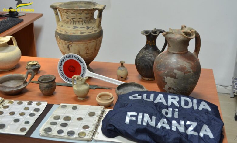 In particolare, sono state ritrovate più di 500 monete di periodo magno-greco, bizantino, romano risalenti ad un periodo storico ricompreso tra il IV a.C. ed il III d.C., di utilizzo corrente in diversi periodi della storia romana, come ad esempio, il periodo imperiale di Augusto, Traiano, Nerone, Vespasiano, Adriano, Marco Aurelio, Commodo, Caligola, Caracalla, Diocleziano, Giulio Nepote. Inoltre, sono state recuperati 13 pezzi tra anfore e vasellame vario di origine greca, alcuni dei quali appartenenti ad una prestigiosa raccolta denominata “Navarra”, risalente al VII e al VI secolo a.C., la cui originaria composizione era data da più di 600 esemplari, di stile protocorinzio, corinzio, ionico e attico con un valore stimato di oltre mezzo milione di euro, e anche una spada bronzea risalente all’età del ferro (IX-VII a.C.)