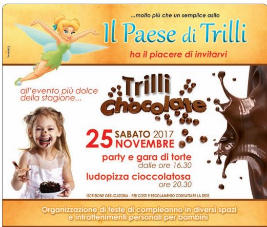 Il Paese di Trilli vi invita al nuovo evento aperto anche all’esterno del Chocolate Party e gara delle torte che si svolgera’ questo sabato 25 novembre nella stessa struttura di Via di Valle Schioia, 197/A 199 dalle ore 16,30, alla presenza di una giuria qualificata che assaggerà tutte le torte in gara . Ai partecipanti sono garantiti dei simpatici premi e il servizio giornalistico sulla nostra testata. Anticipiamo anche l’iniziativa del 16 e del 23 dicembre aperto a tutti i bambini anche non frequentanti come potrete leggere dalla locandina. Tra le iniziative e attività del centro da tenere presente l’organizzazione di feste di compleanno in diversi spazi e intrattenimenti personali per bambini,