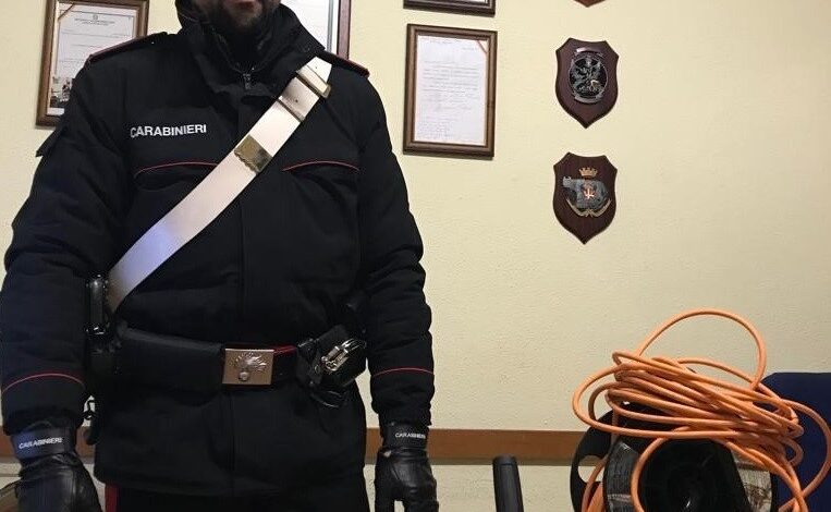 L’uomo aveva con sé un frollino elettrico col quale stava tagliando le inferriate di una finestra; i Carabinieri hanno sequestrato il frollino, unitamente ad altri dischi per il taglio dei metalli, una torcia elettrica, una chiave cosiddetta “a pappagallo” e una prolunga.