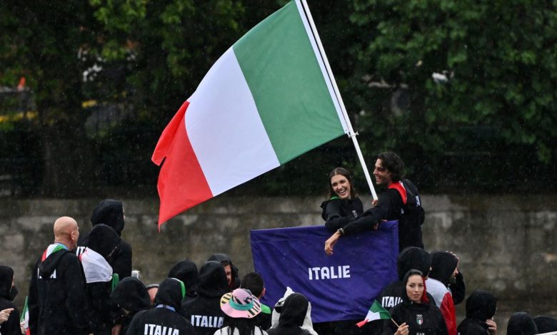PARIGI (FRANCIA) (ITALPRESS) – I due portabandiera, Arianna Errigo e Gianmarco Tamberi, saldamente a quattro mani sorreggono e fanno sventolare in alto il vessillo tricolore. Attorno a loro, fanno festa sopra la Senna e sotto una pioggia incessante i circa 200 componenti, tra atleti (141) e addetti ai lavori, dell’Italia Team. Cerimonia bagnata, adesso si spera in un’Olimpiade fortunata per gli azzurri salpati alle 19,35 da Pont d’Austerlitz sul battello numero 37 diretto al Trocadero dopo una navigazione di circa 6 km sul fiume che passa in mezzo alle strade più iconiche di Parigi: da Notre-Dame al Louvre, oltre ad alcune sedi dei Giochi, tra cui l’Espanade des Invalides ed il Grand Palais. A condividere il piano di sopra della barca con l’Italia c’è la Giamaica mentre a prua spazio a Islanda e Israele. Gli alfieri tricolore in rappresentanza di 20 discipline (atletica, badminton, beach volley, breaking, canoa, canottaggio, ciclismo, ginnastica artistica, judo, nuoto, pallanuoto, pugilato, scherma, sport equestri, taekwondo, tennis, tennistavolo, tiro con l’arco, tuffi e vela) indossano un capo speciale firmato EA7 Emporio Armani e vengono accompagnati, tra gli altri, dal Segretario Generale del Coni e Capo Missione azzurro Carlo Mornati. All’arrivo al Trocadero, sotto la Tour Eiffel, qualcuno sceglie di andare a ripararsi dalla pioggia (anche perchè le gare incombono), ma non manca chi si scatena e balla sotto l’acqua sventolando le bandierine bianche, rosse e verdi fino alla fine.