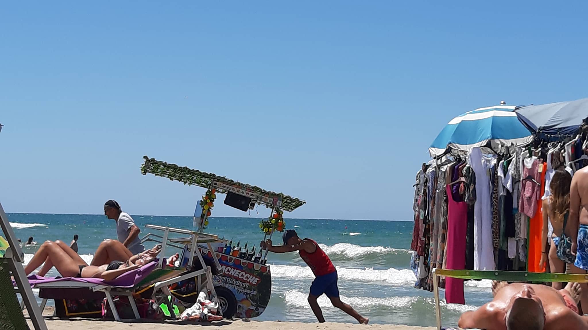 Un mercato abusivo che ha invaso tutti gli arenili, e che negli anni si è trasformato. Se prima c’era il classico venditore di coccobello e/o lo straniero di turno con il mega-carretto a rotelle stracarichi di abiti, passeggiando da Nettuno a Civitavecchia, passando per Torvaianica e Ostia, ora è possibile trovare di tutto. Dalle custodie per il cellullare, carica batterie, apparecchi elettronici di ultima generazione, grattachecche, telline appena pescate, fino al pesce fresco cucinato in riva al mare. Un via vai senza sosta di stranieri, ma non solo, che fanno su e giù tra lettini, sdraio e ombrelloni, incuranti di ogni regola igenico-sanitaria. Tutti rigorosamente senza controlli di qualità e provenienza del cibo venduto.