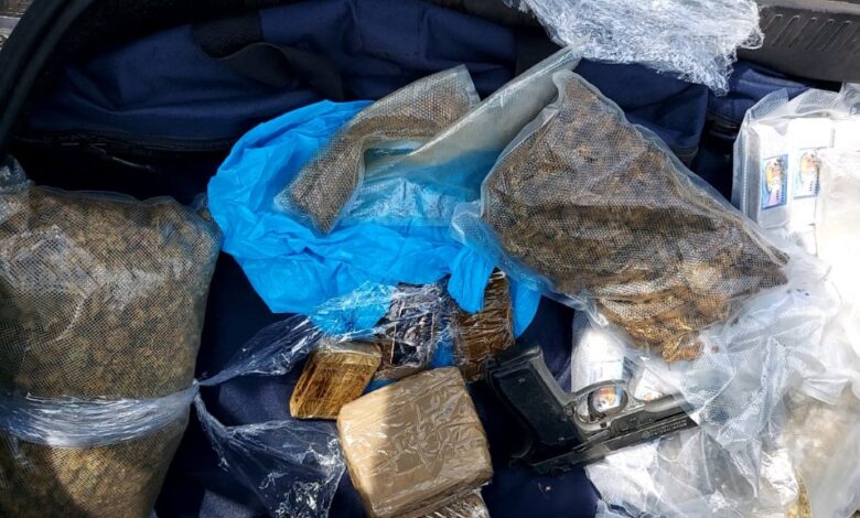 Trovati e sequestrati 5.126 grammi di hashish e 1.483 grammi di marijuana oltre che 2 scatole contenenti in totale 9 cartucce artigianali, 5 cartucce a salve ed un bossolo.