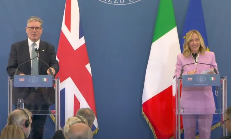 ROMA (ITALPRESS) – “Il rafforzamento della nostra relazione può essere decisiva per garantire sicurezza e prosperità ai nostri popoli. Oggia abbiamo adottato una dichiarazione congiunta, un documento estremamente importante, contiene degli spunti molti concreti”. Lo ha detto il presidente del Consiglio, Giorgia Meloni, al termine dell’incontro con il primo ministro del Regno Unito, Keir Starmer. “C’è un dialogo continuo in materia di politica estera e di difesa, su energia, scienza, innovazione, sicurezza e lotta al crimine, contrasto all’immigrazione di massa: è un fenomeno che interessa tutta l’Europa, siamo d’accordo che la prima cosa da fare è intensificare la lotta al traffico di essere umani e farlo unendo di più gli sforzi, lavorando a una maggiore cooperazione e puntando al cuore di questo traffico”, ha aggiunto. “Siamo d’accordo nel non avere timore ad esplorare soluzioni nuove. Abbiamo parlato del protocollo tra Italia e Albania che è una soluzione per la quale il governo della Gran Bretagna dimostra molta attenzione, un’innovazione portata dal governo italiano nella politica di governo di flussi migratori”, ha concluso Meloni.