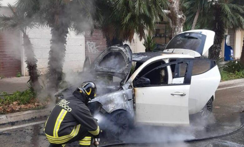 Incendio auto all'altezza del civico 169 di viale Guido Baccelli