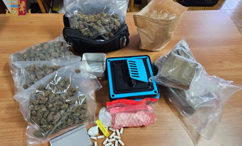 1 Kg e 191 grammi di hashish, 416 grammi di marijuana e 69 grammi di cocaina, lo stupefacente rinvenuto nei diversi meandri dell’abitazione, oltre a materiale per il confezionamento – tra cui un macchinario per chiudere le capsule di cocaina -, un bilancino di precisione ed un notes con la contabilità dello spaccio quotidiano.